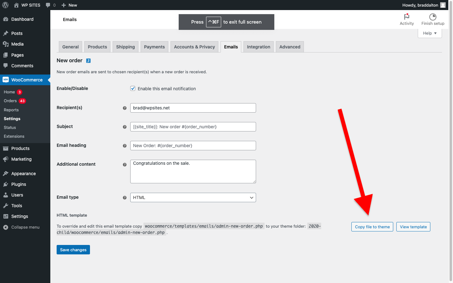 You can then use FTP or cPanel in your hosting account to edit the admin-new-order.php file in your child themes woocommerce/emails folder and modify the default code or add custom code directly to the template.