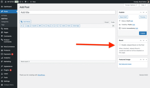- Look for the “Jetpack Boost Settings” meta box in the sidebar