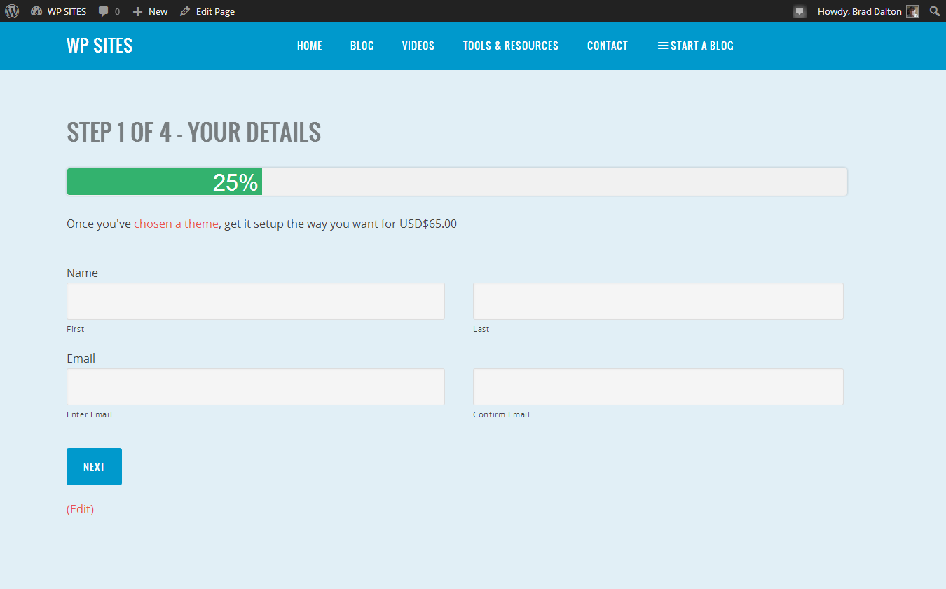 In this example, i used a custom landing page template and the form is broken up into 5 pages on the same URL ( 4 Steps ) within the form.