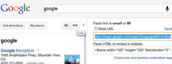Another option would be to visit Google Maps and simply copy and paste the Link URL or iframe HTML code into any webpage if you don’t want to install a Google maps plugin in your WordPress site.
