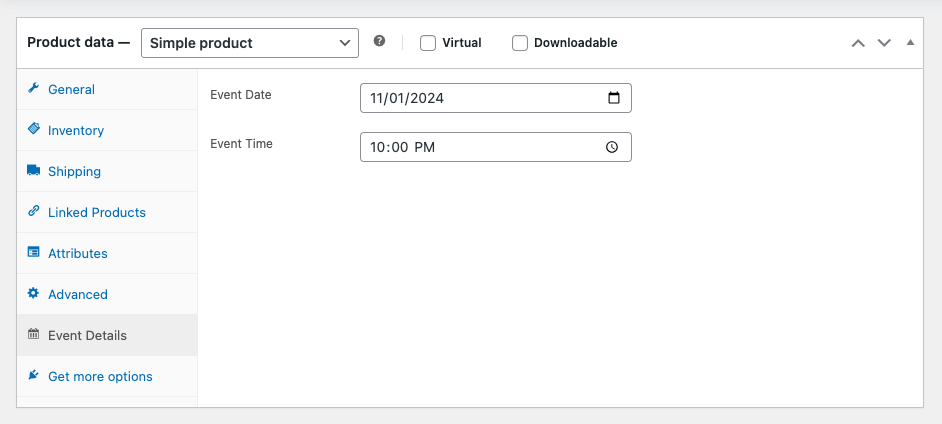 This code enables you to add both an event date and time to any product in WooCommerce. Rather than use an events plugin, you can make your own events using this code.