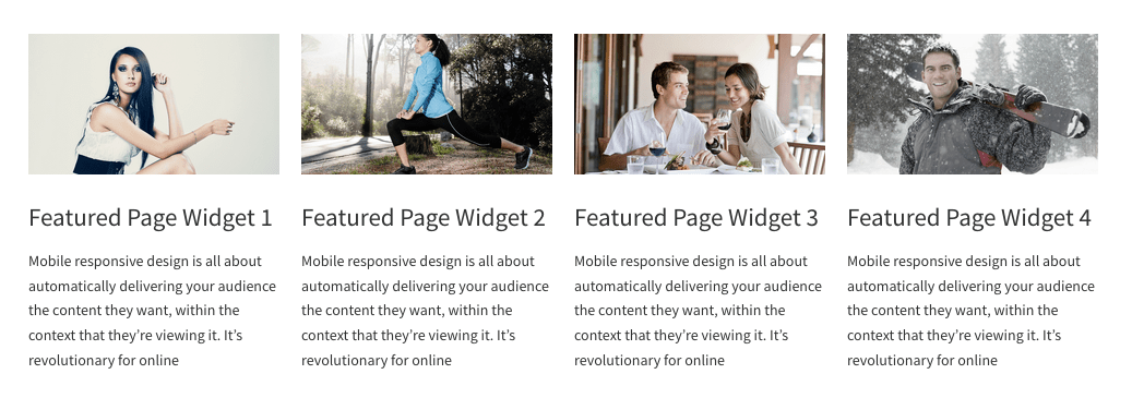 This CSS enables you to display 4 featured page widgets, added to 1 widget area, in a grid.