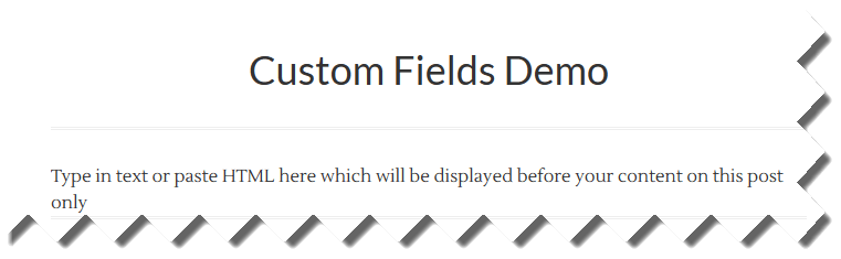 Now you can use the same function and custom field name to display custom content on any page or post based on the location the hook you added to the function outputs your content.