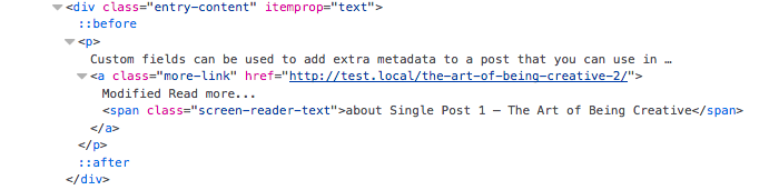 $more_text = genesis_a11y_more_link( __( 'Modified Read more...', 'genesis' ) );