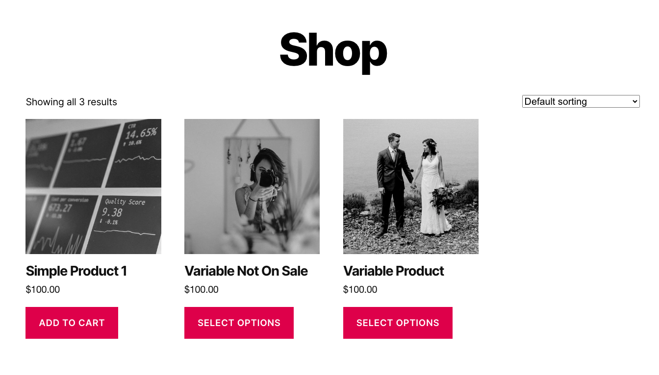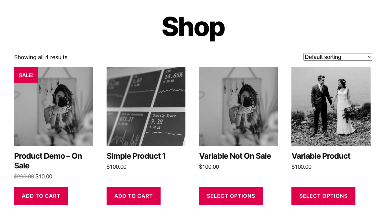 The following gallery images show on sale products included in the shop page loop on the left and excluded on the right.