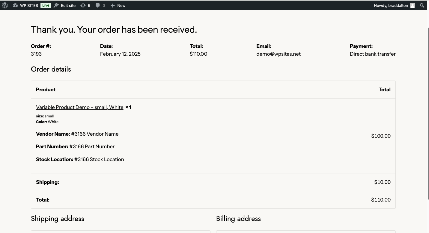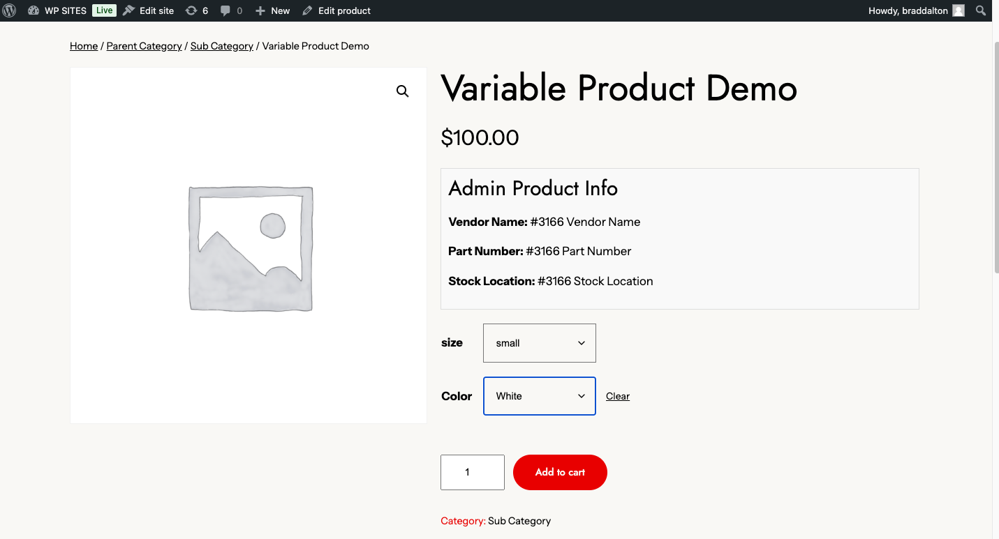 - A setting to show the data on the single product page for variable products dynamically based on variation selection