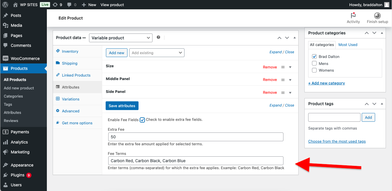 - Adds fields which can be toggle open and closed on the attributes tab on single product edit screen for variable products. Fields are added for additional price and attribute terms you want to target.