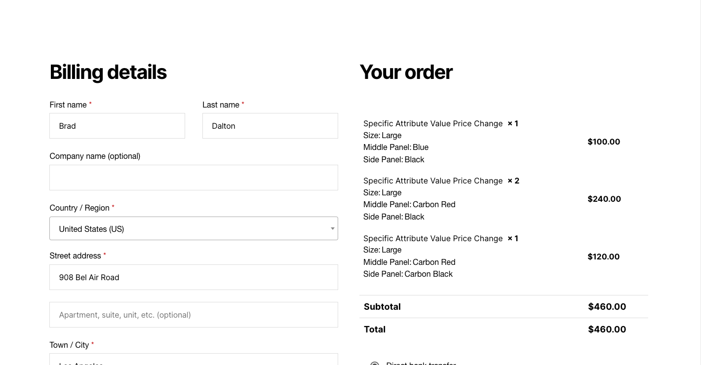 - Changes the product price and subtotal prices on the cart and checkout pages.