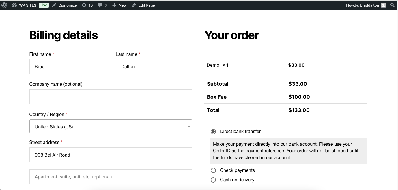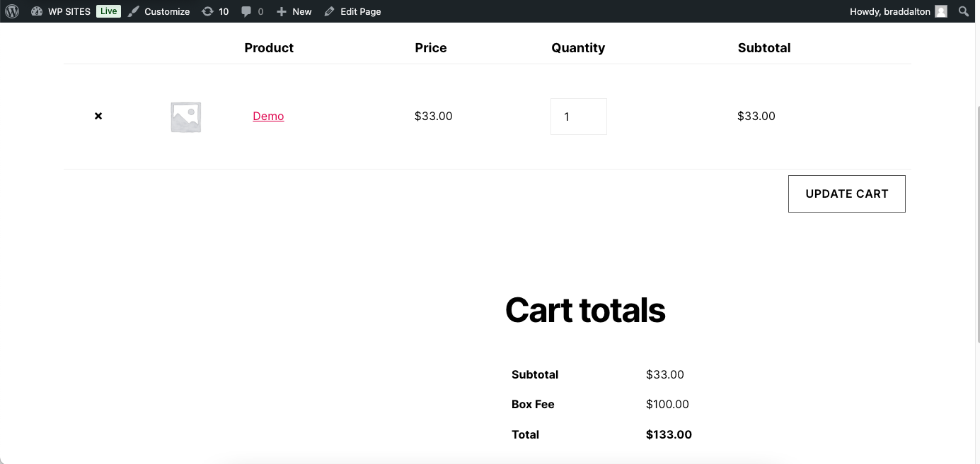 - A text field to customize the fee label displayed on the cart, checkout and order details