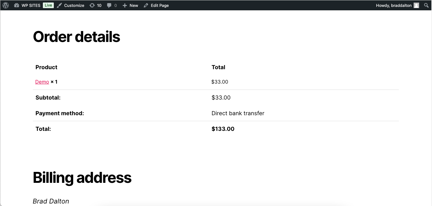 - A checkbox to show or hide the extra fee displayed in the order details, on the order received page and order emails sent to the customer