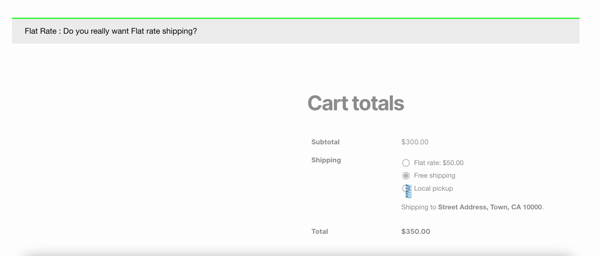This PHP code includes jQuery which enables the store owner to display a dynamic message on the cart and checkout pages when each shipping method is selected like this :