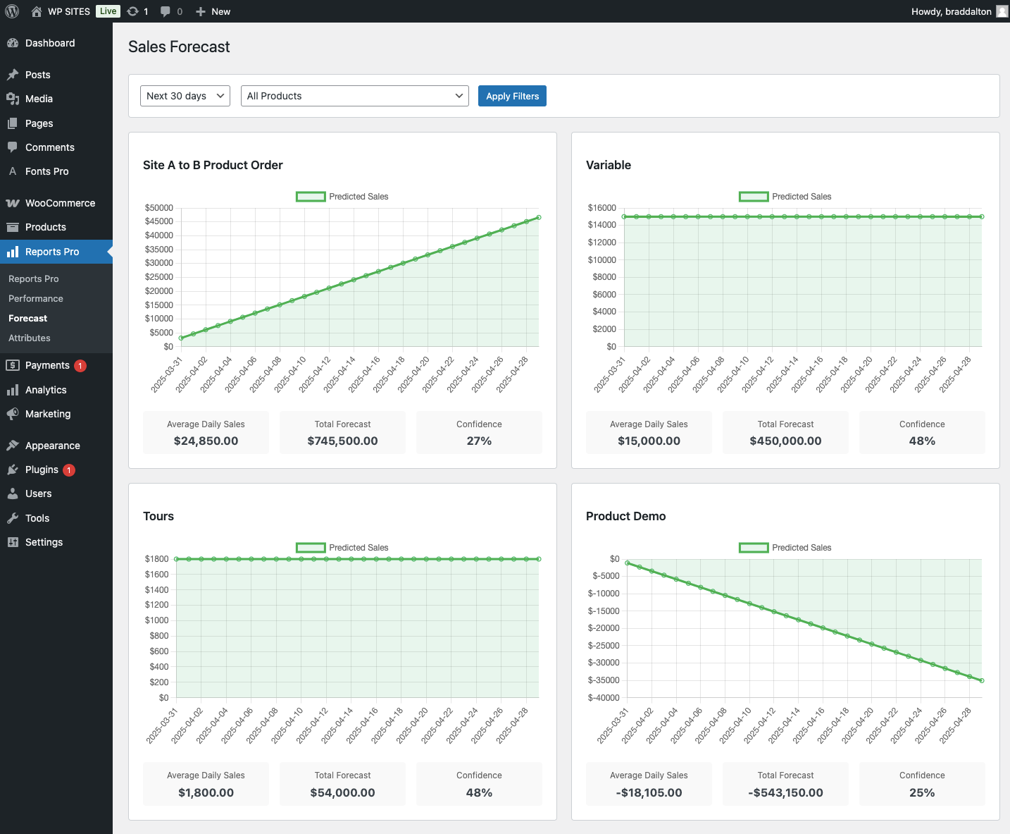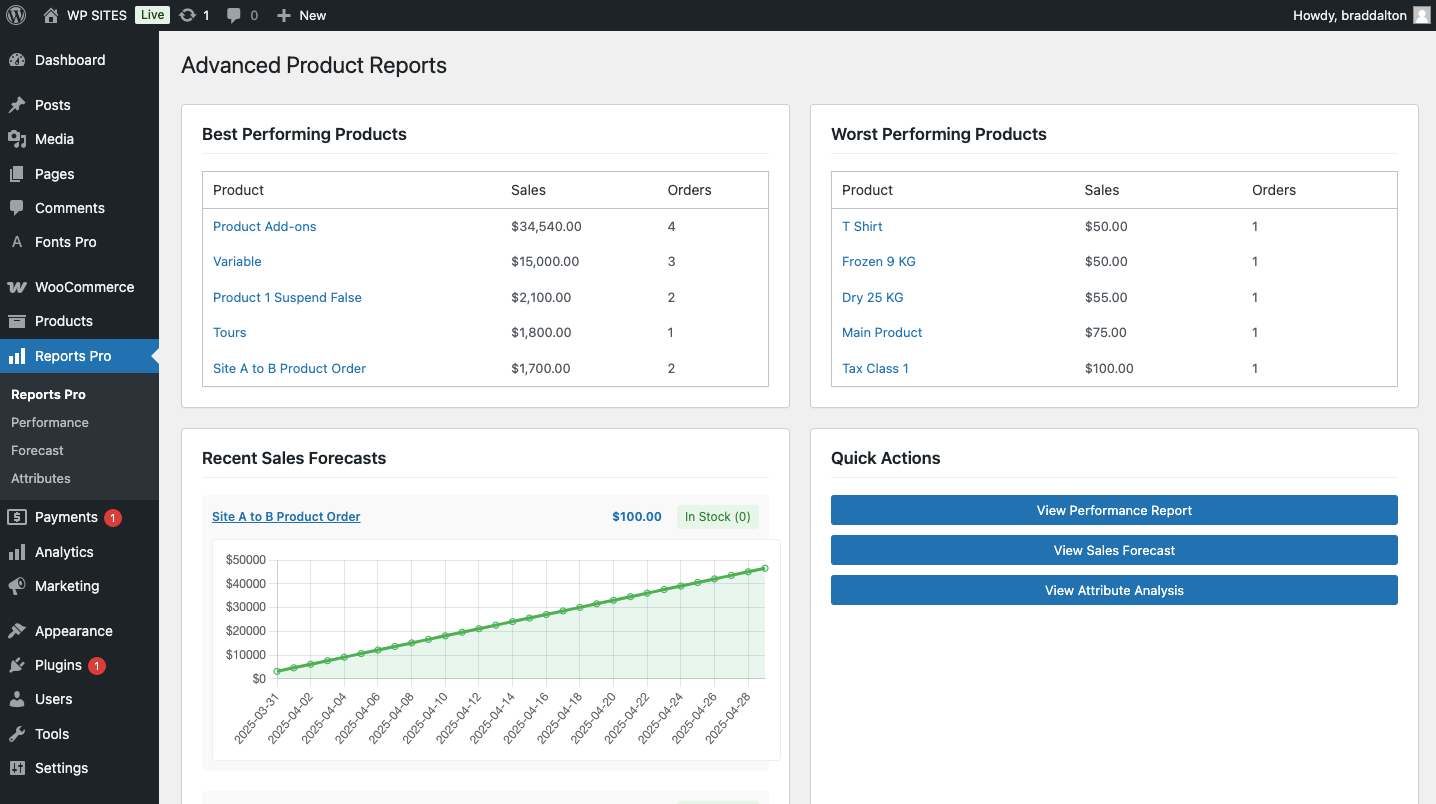 Advanced Product Reports for WooCommerce is a comprehensive reporting and analytics plugin that provides detailed insights into product performance, sales forecasting, and attribute-based analysis. This plugin helps store owners make data-driven decisions about their inventory and sales strategies.