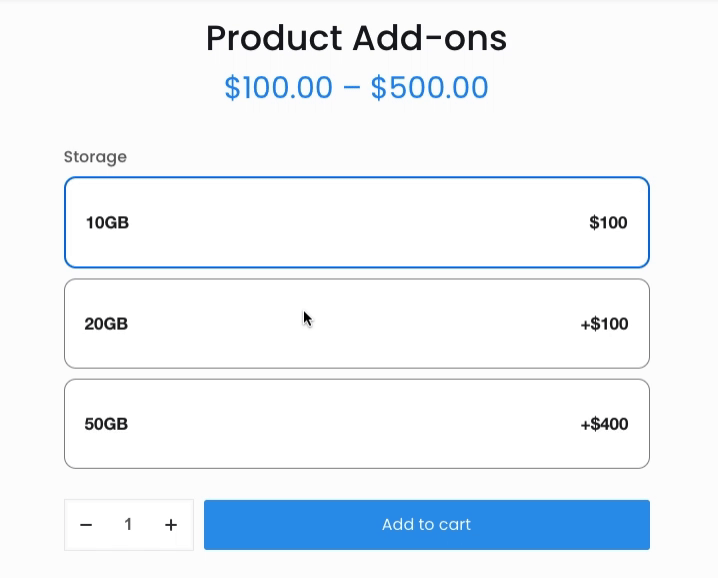 - Prices will show the difference, plus or minus what it costs to upgrade or downgrade a products selection dynamically on button click.