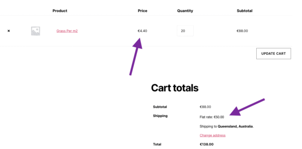 This PHP code changes the product price on the cart and checkout pages based on which shipping method your customer chooses. All you need to do is set :