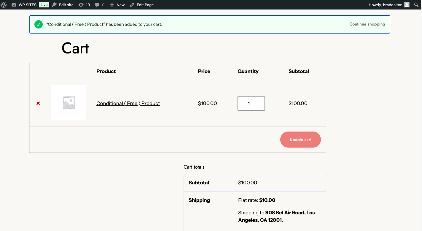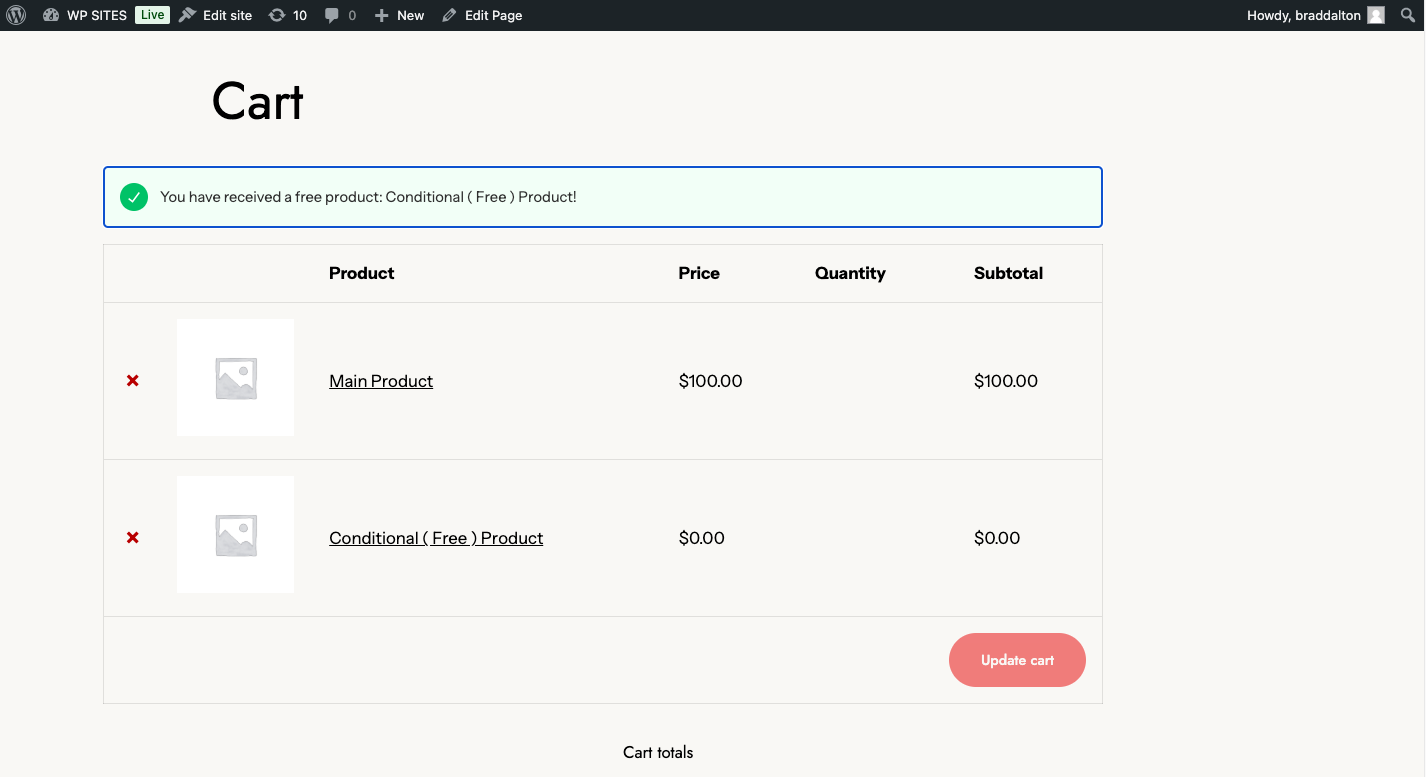 - If the main product is not included in the cart, the conditional product is no longer free.