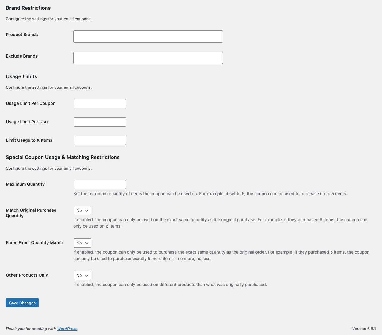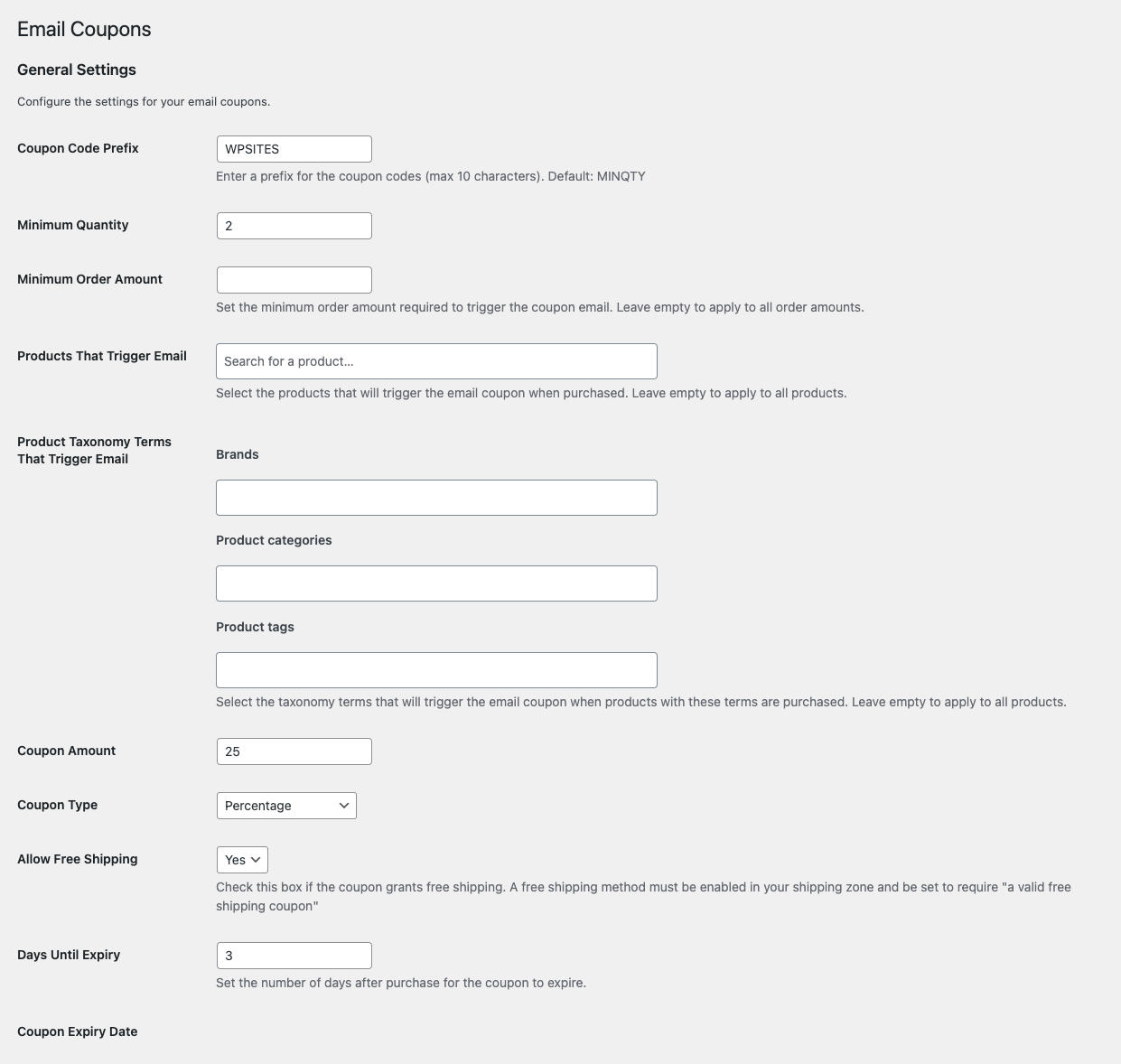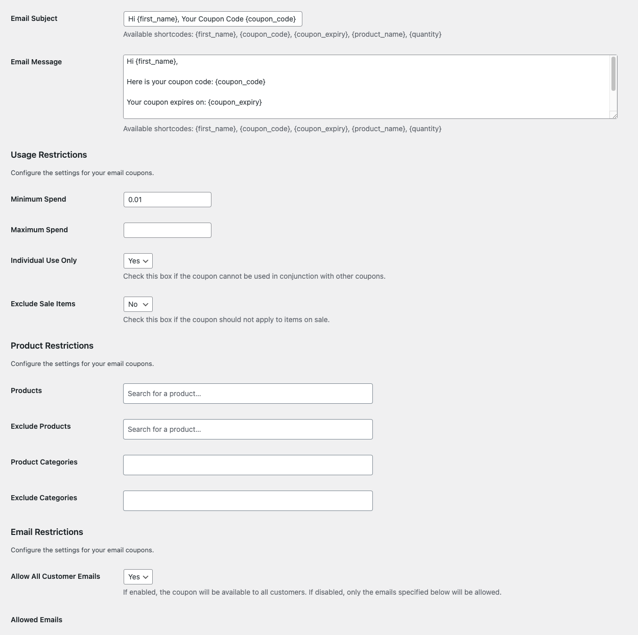 This plugin includes all the features included in this coupon generation plugin plus additional controls for :