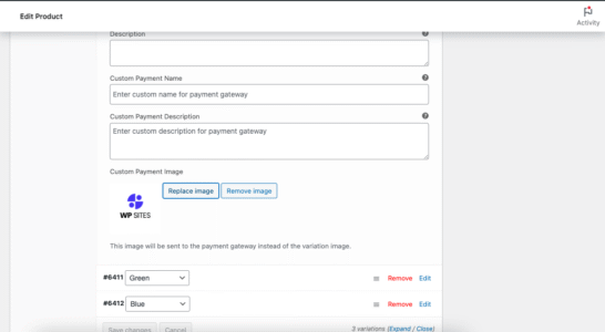 - Custom Payment Description: Enter custom descriptions for each variation