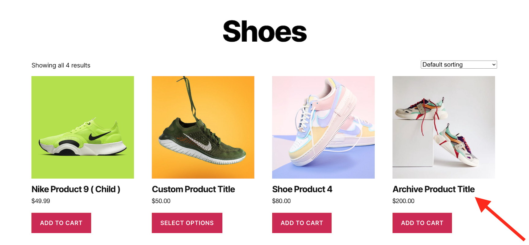 This PHP code enables the storeowner to use a different product title on archive pages like category, tag and other shop loop archive page types. This way you can show a custom title which is different to what’s shown on the single product page.
