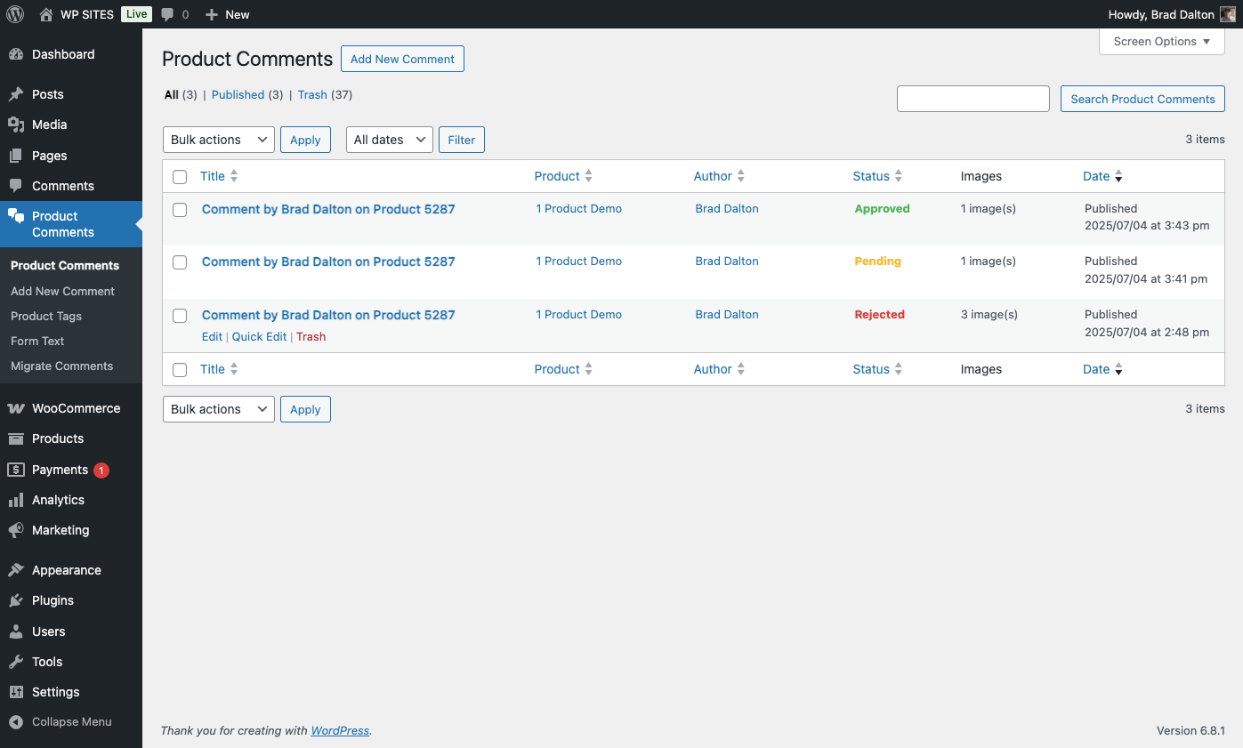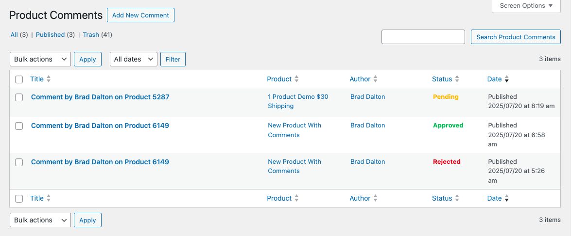 - Bulk Actions: Approve, reject, or delete multiple comments at once