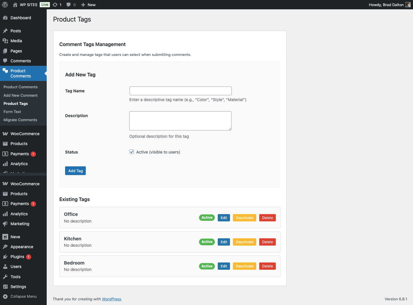 - Visit any WooCommerce product page to see the new Comments tab