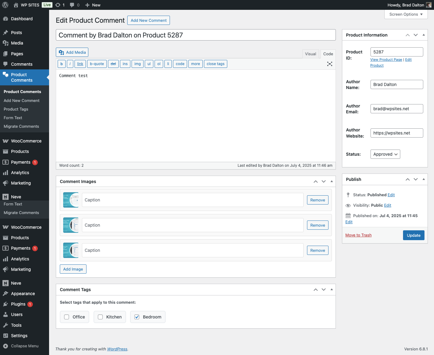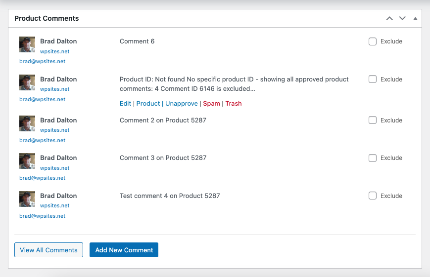 - Product Links: Direct links to view or edit the associated product from comment admin