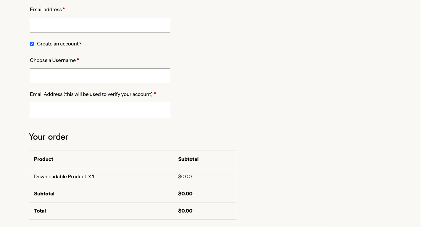 - A error notice to the checkout page to force customers to create an account when checking out with free products