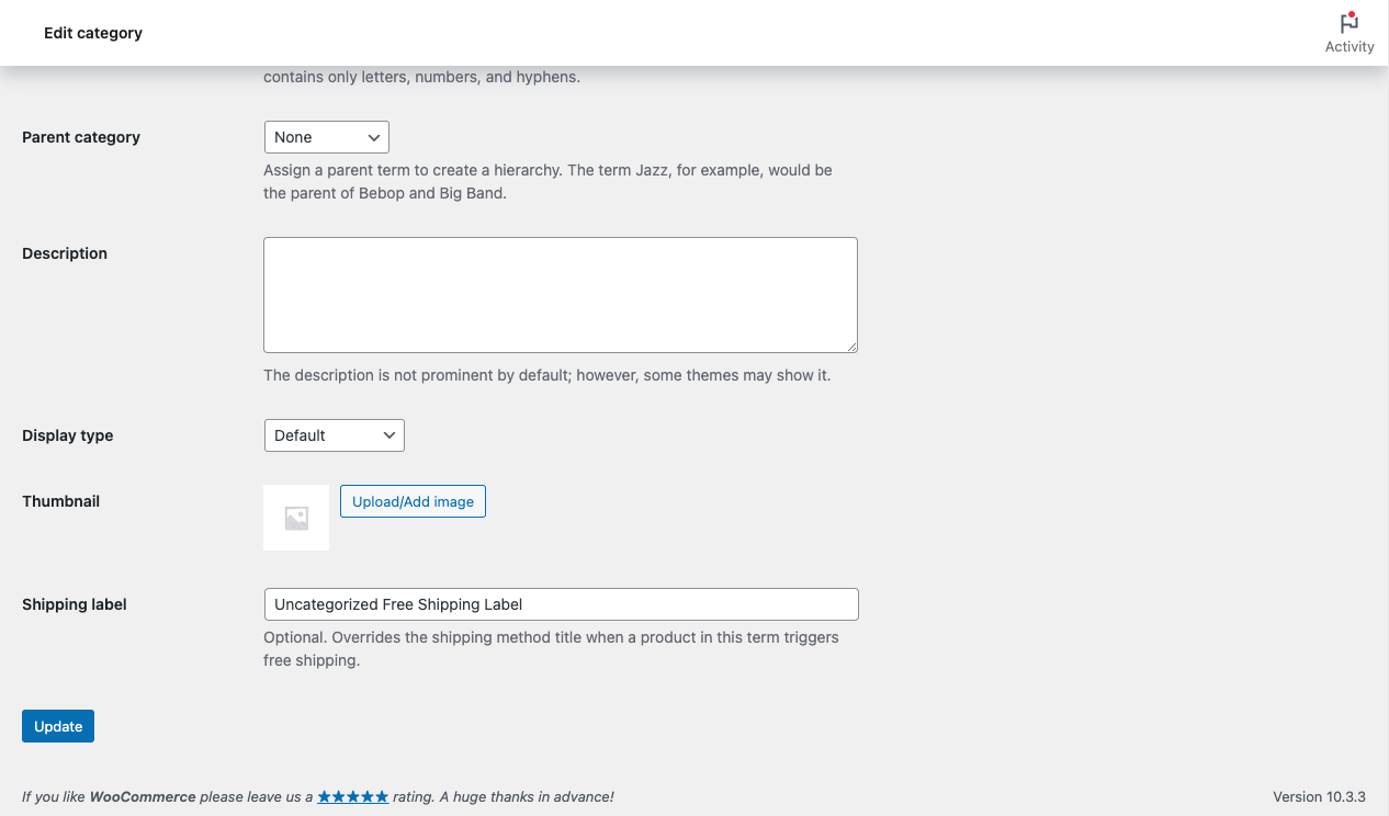 - Shipping label: customize the Free shipping rate title per product, variation, or term