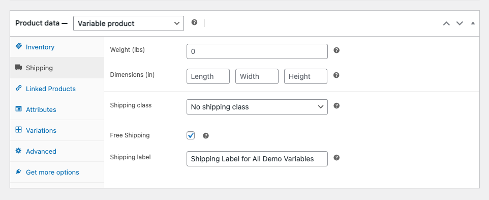 - If any line item (variation, then product) has Free shipping enabled, or any of its assigned terms are enabled, the package is eligible for Free shipping.
