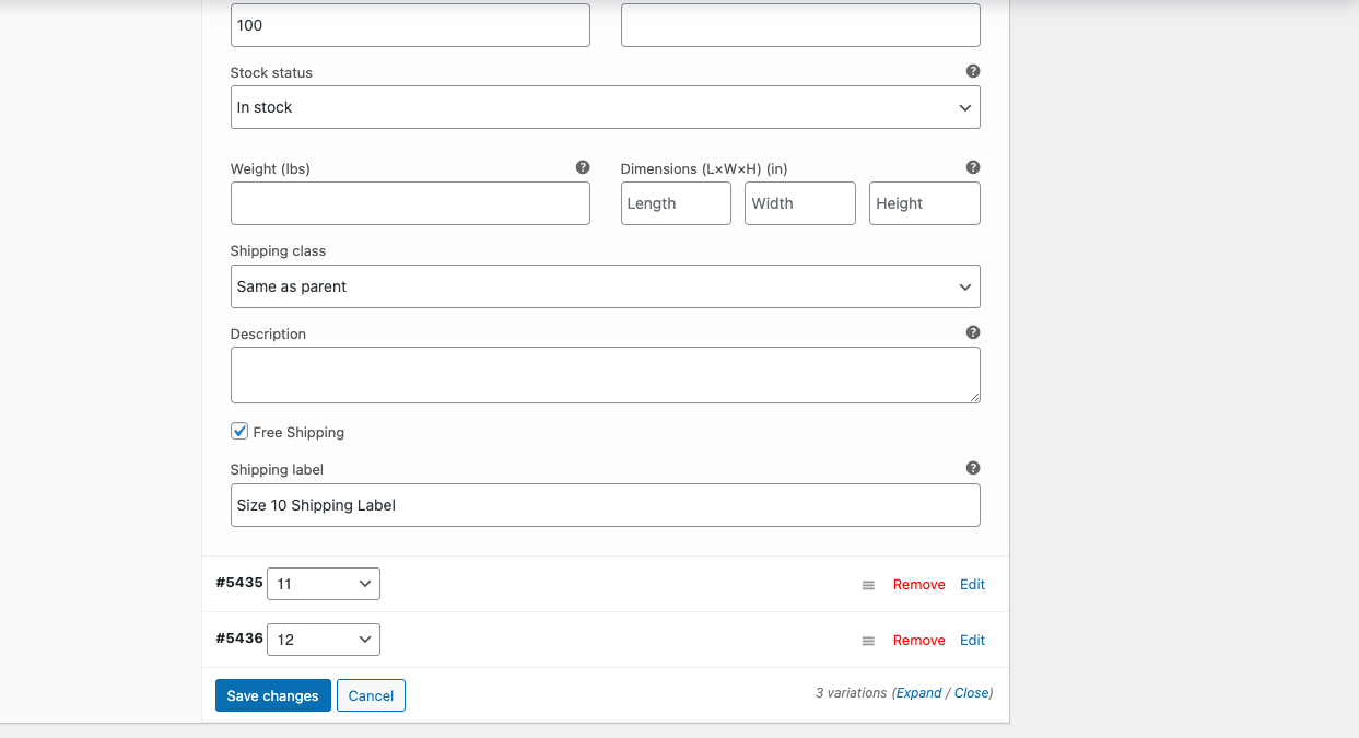 - Edit a variable product → each variation has its own “Free Shipping” toggle
