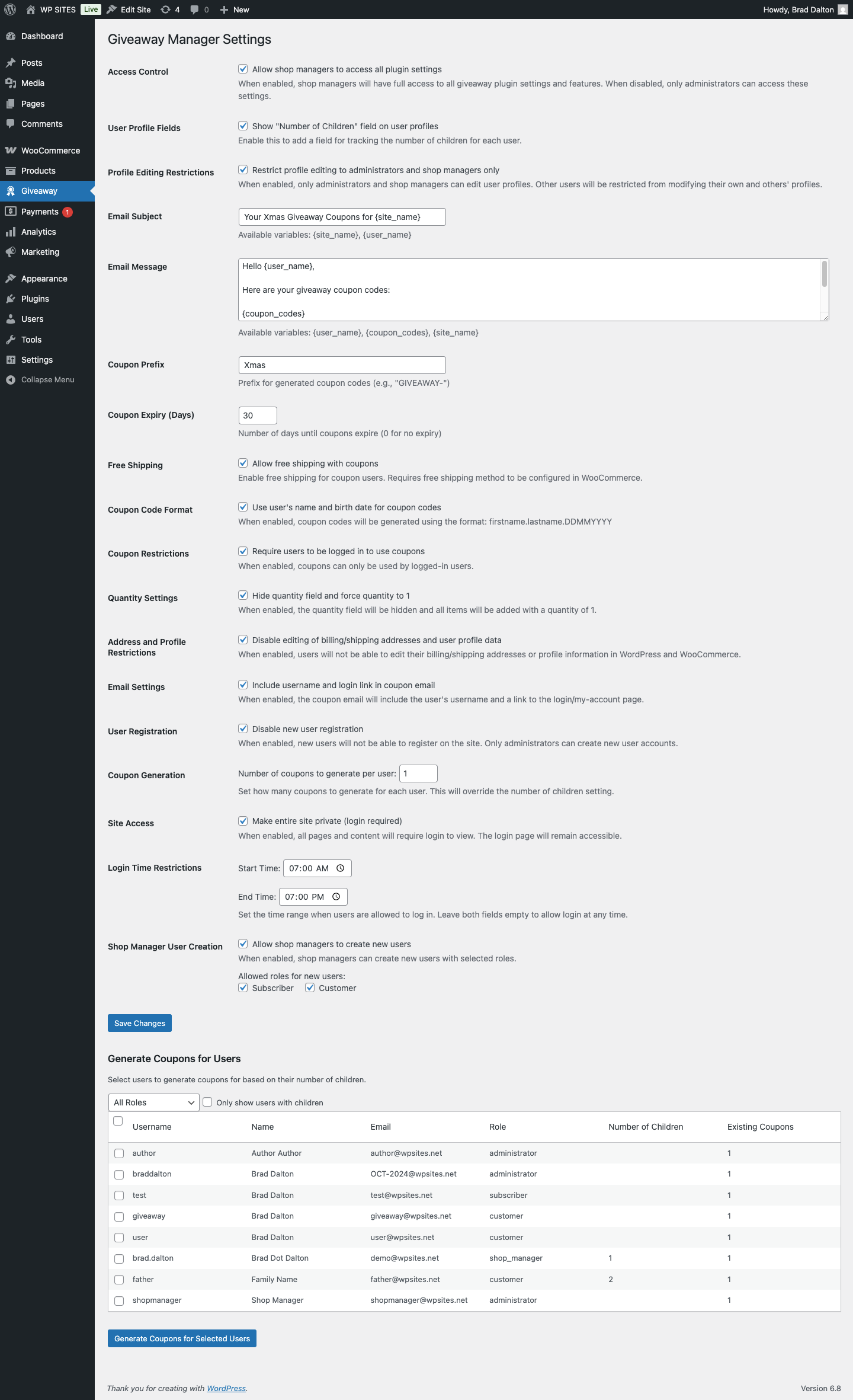 - Generate Coupons for Users : Select users to generate coupons based on user role.
