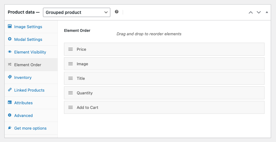 - Element Order – Drag and drop product elements to control position on the product table