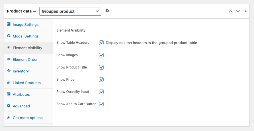 - Show Table Headers – Display column headers in the grouped product table