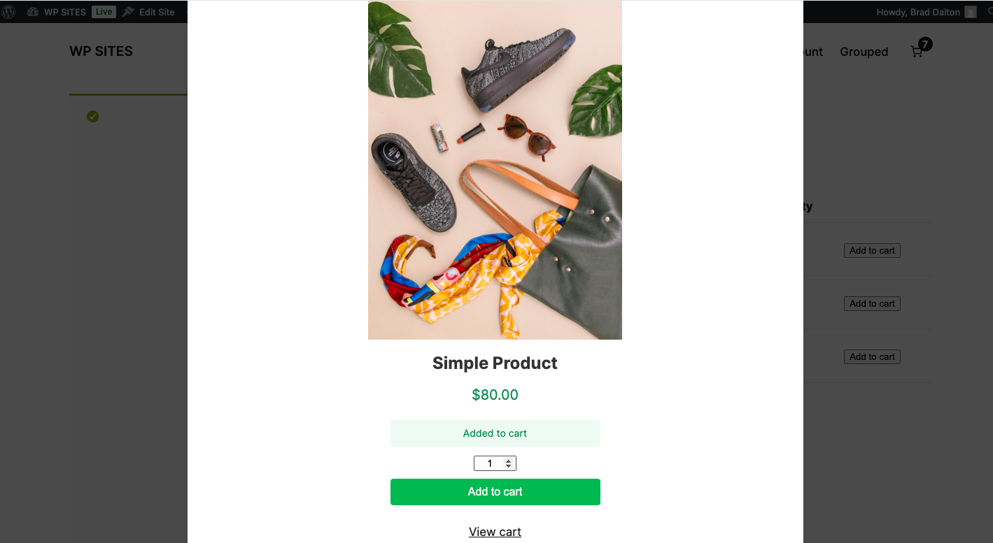 - Shows small “Added to cart” notice in modal