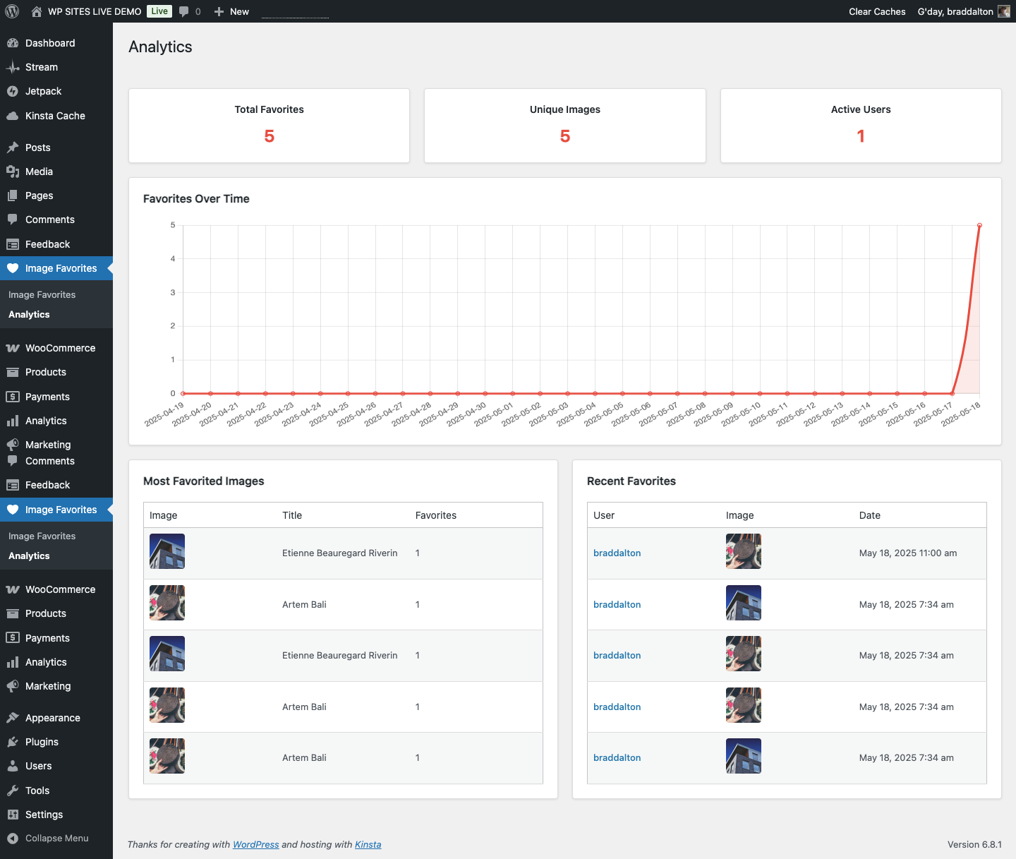 - Create a new page or add the [favorite_images] shortcode to an existing page or post.