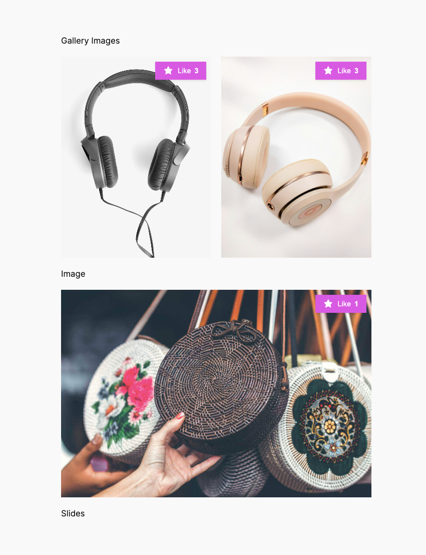 When images are liked, they are included in a list of liked images which can be displayed anywhere using the [favorite_images] shortcode.