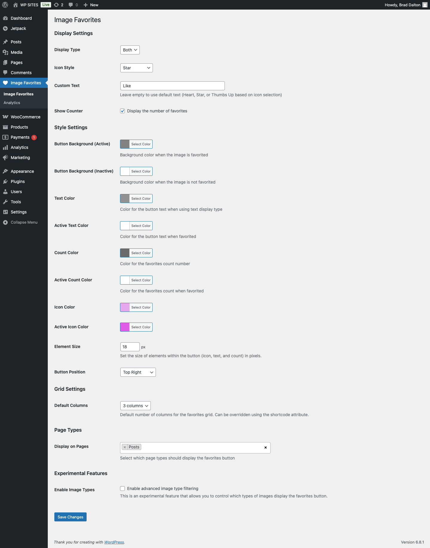 - After plugin installation and activation, you’ll find a new menu item in your WordPress dashboard. Click Image Favorites and select the page type you want buttons added too.
