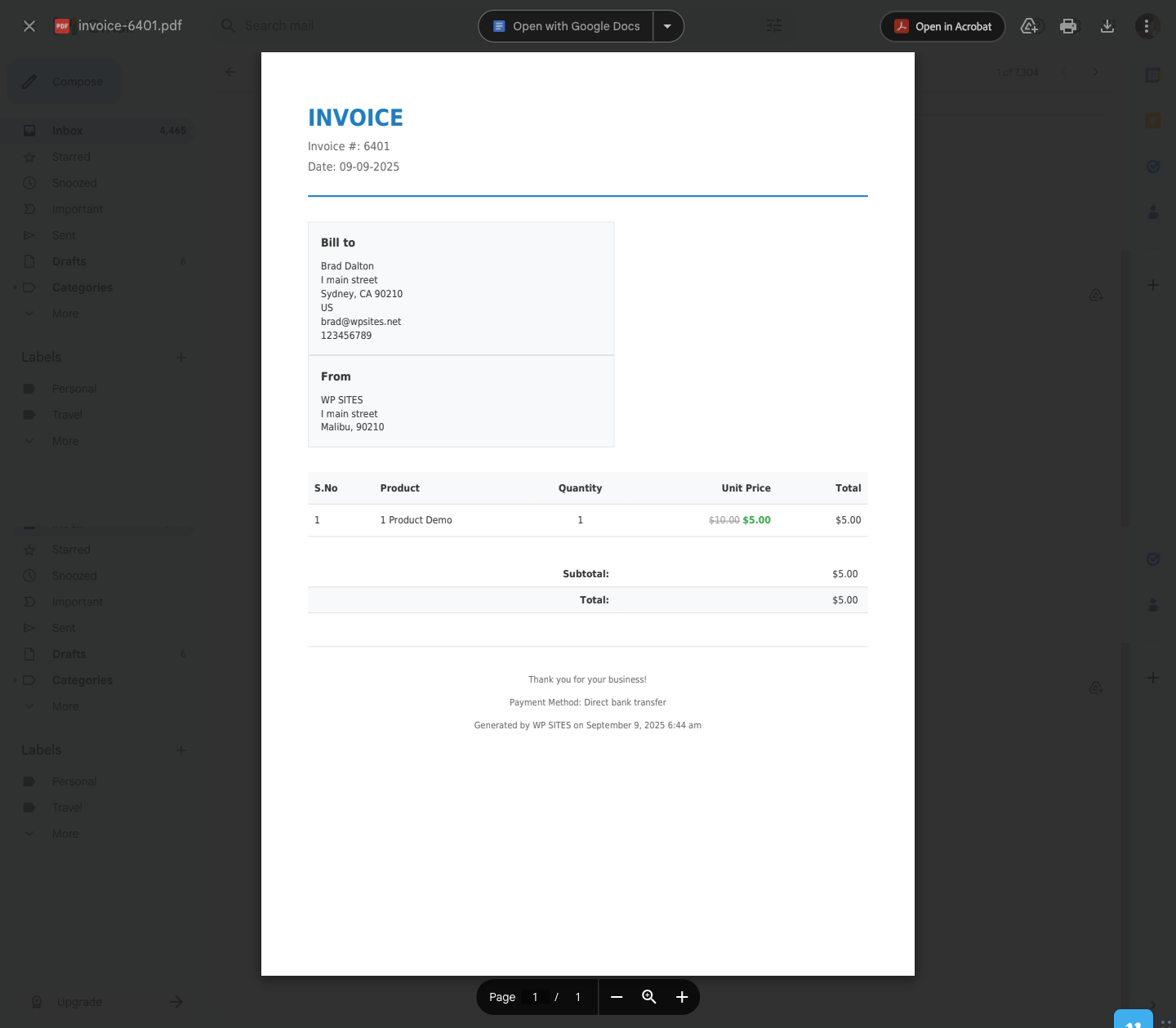 - Attach PDF to Order Emails: Automatically attach PDF invoices to WooCommerce order emails