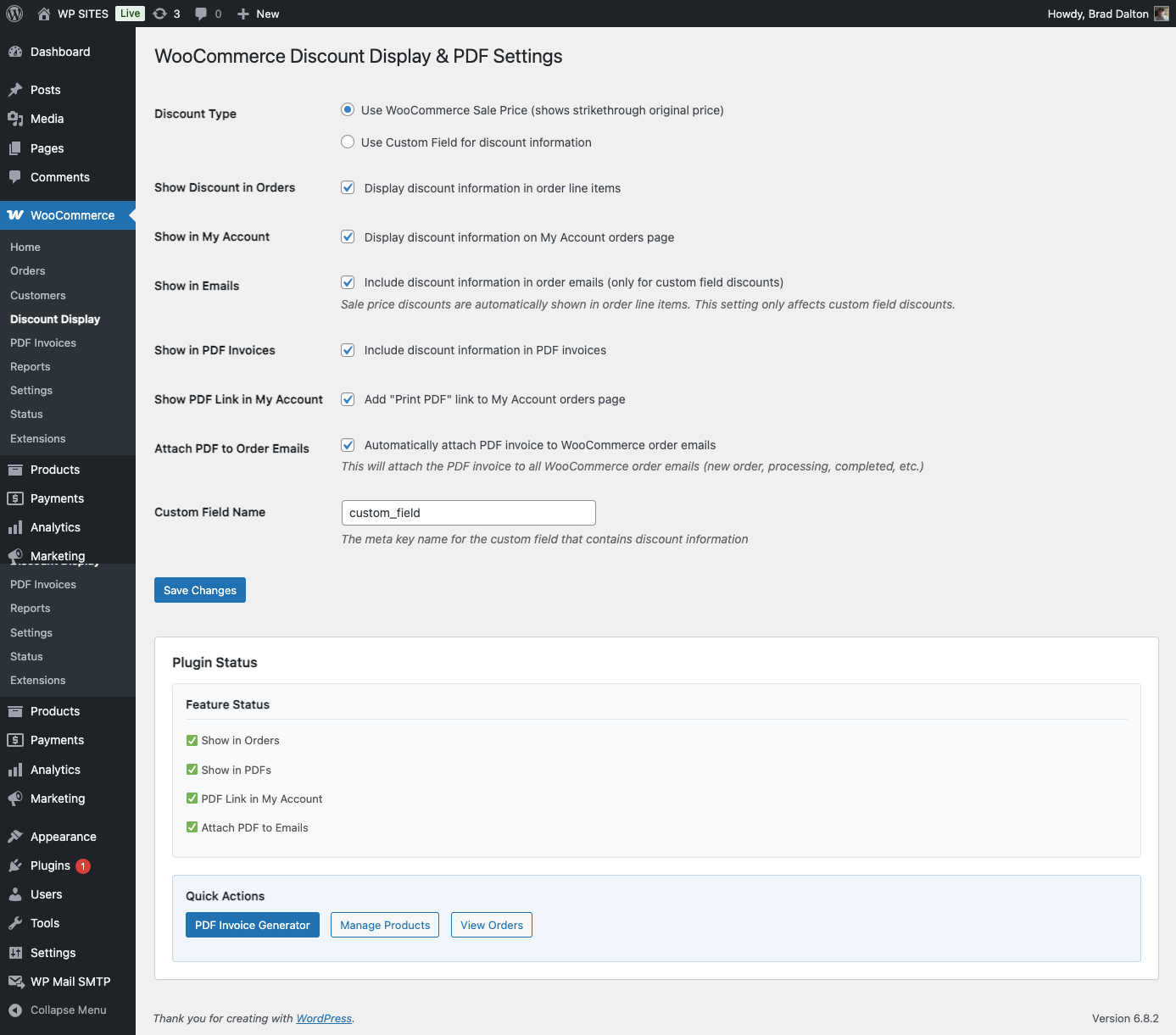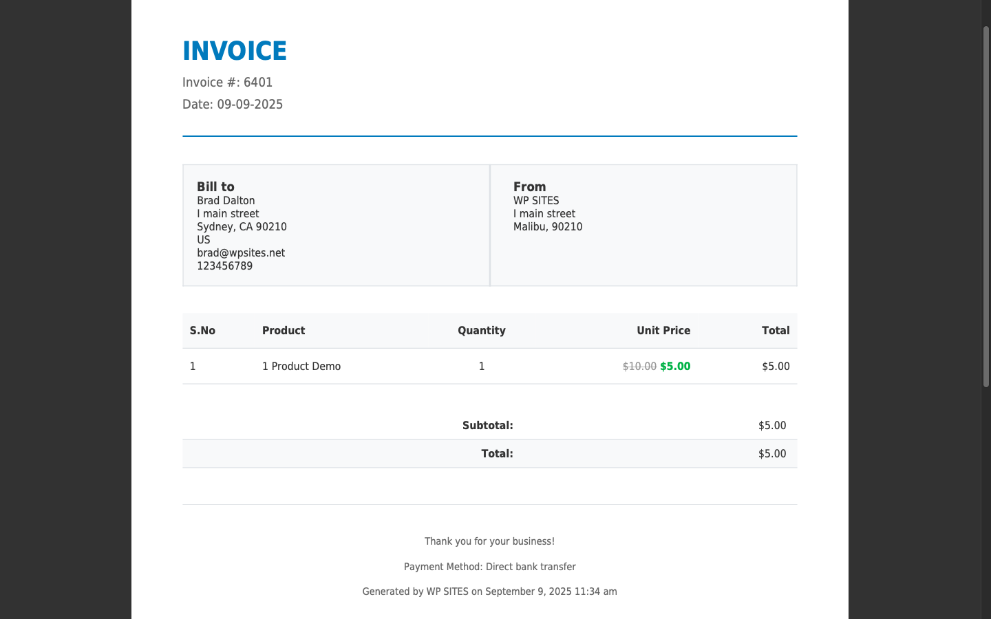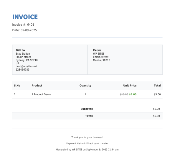 A WooCommerce plugin that displays custom discount information in WooCommerce orders and PDF invoice buttons on your My Account page, and order emails. Includes a built-in PDF invoice generator with advanced features enabling downloading and emailing of invoices in 1 click for any order.