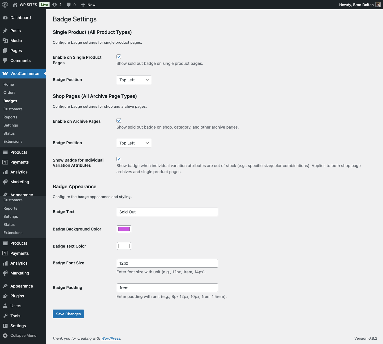 Navigate to WooCommerce > Badges in your WordPress admin to configure: