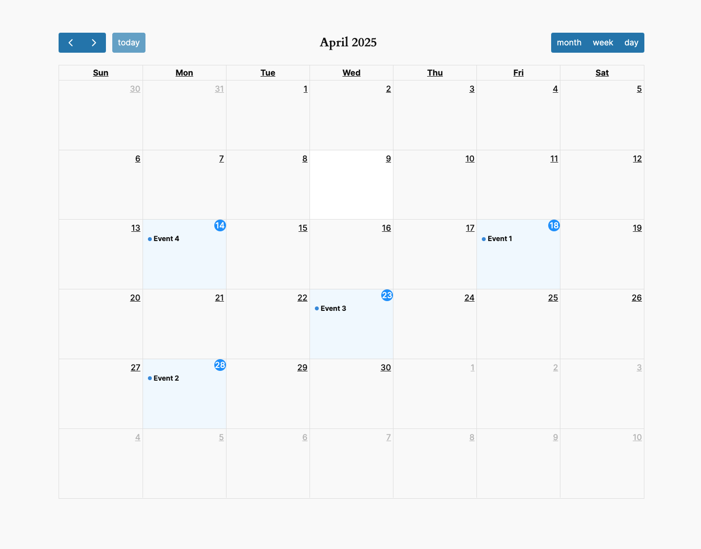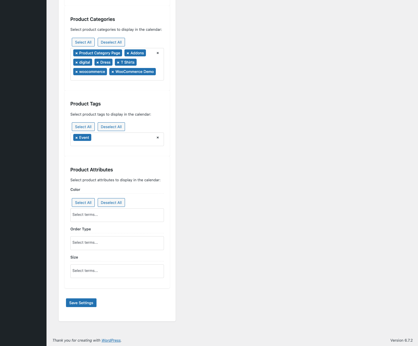 - Display settings to choose what information to display for each event in the calendar. Includes date, time and product name