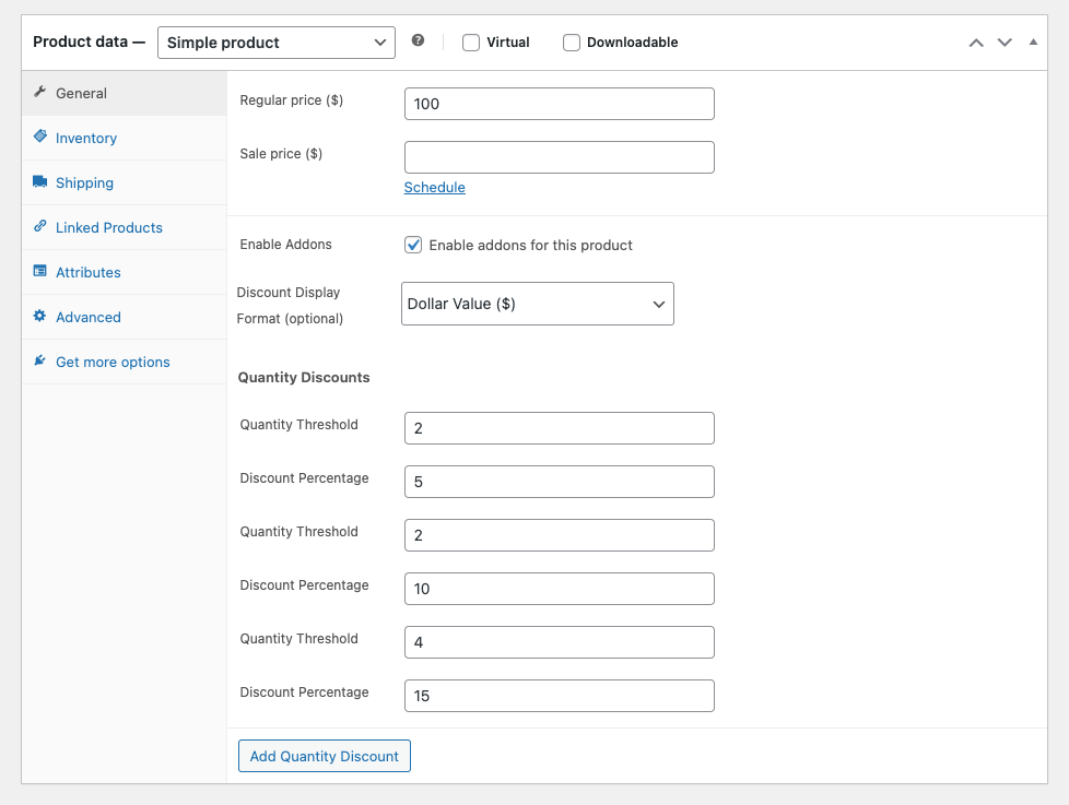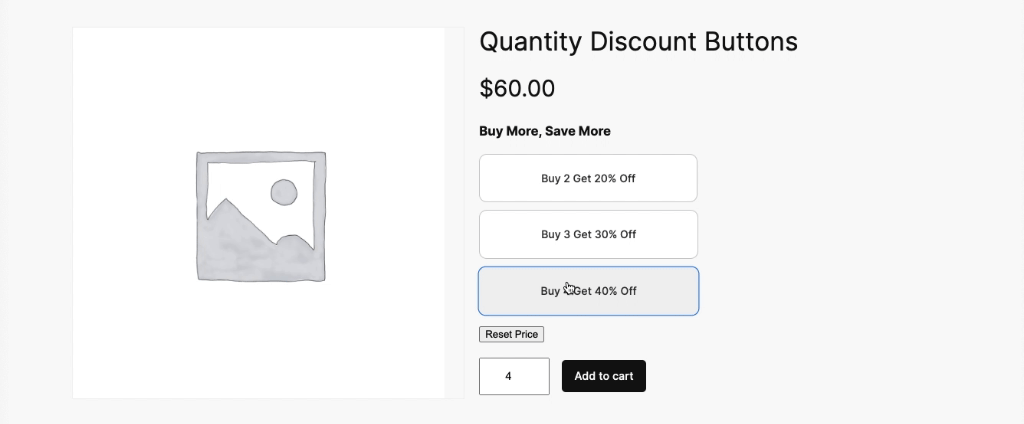 This mini plugin for WooCommerce enables you to display buttons with unique percentage discounts based on quantity.