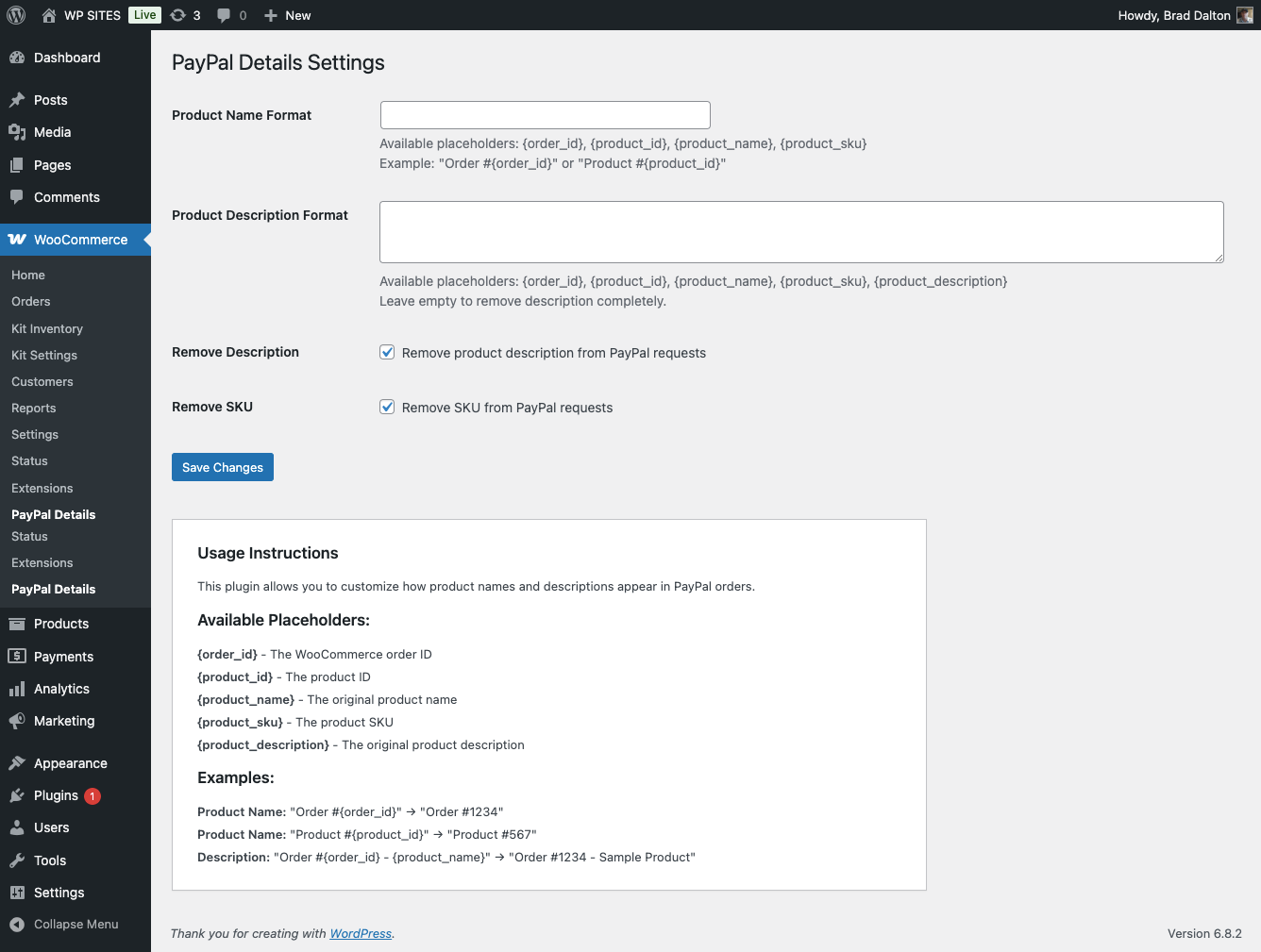 - Go to WooCommerce > PayPal Details and configure the settings.