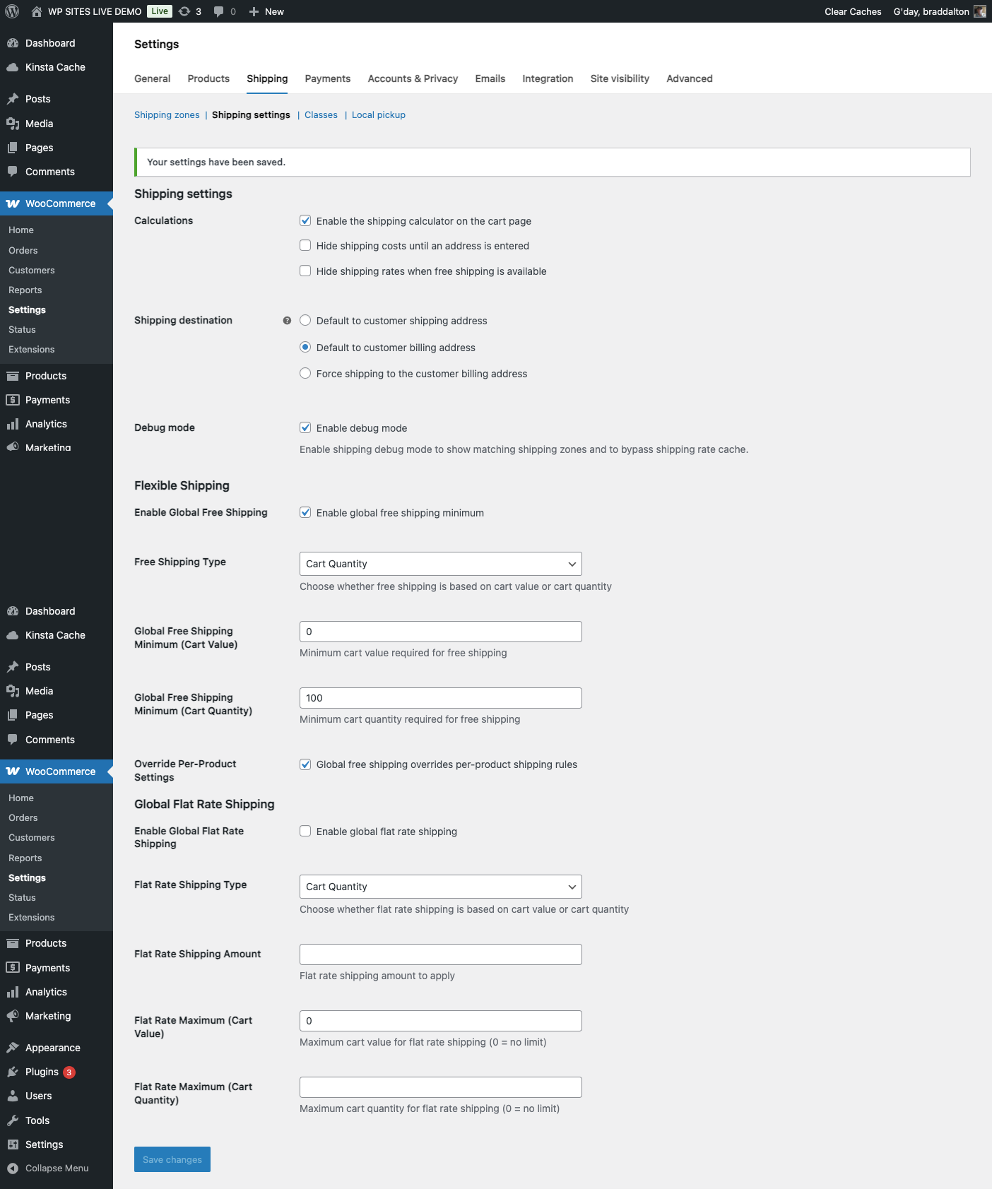 - Set “Flat Rate Shipping Type” to “Cart Quantity”