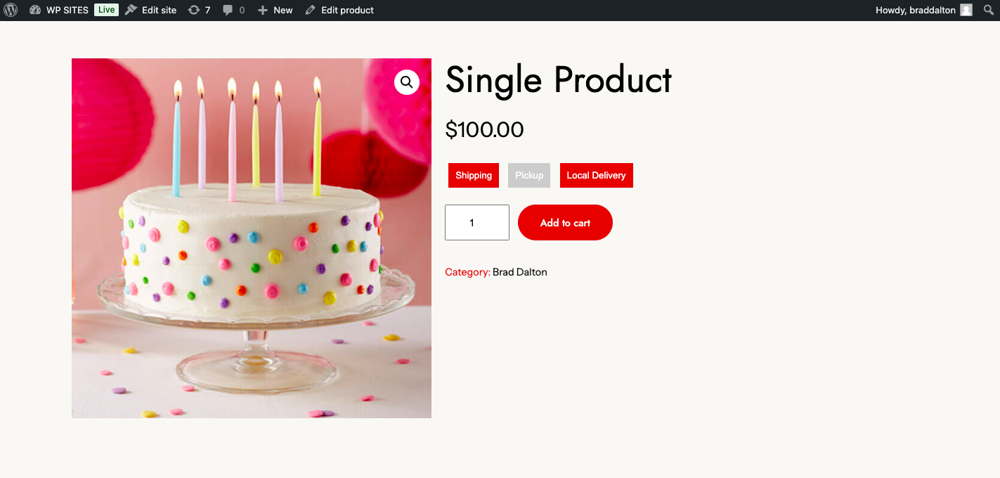 - If Local Pickup is selected on the single product page, DHL and Local Delivery will be removed from the cart page.