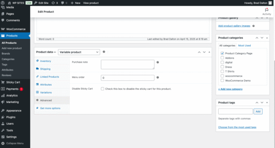 - Disable Sticky Cart on a per product basis – Check this box to disable the sticky cart for this product.