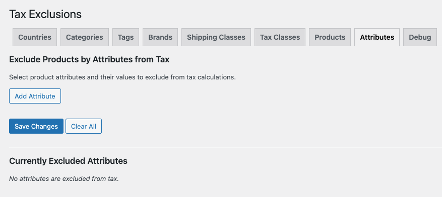 - Product Attribute exclusion – Exclude tax for products with specific attribute values