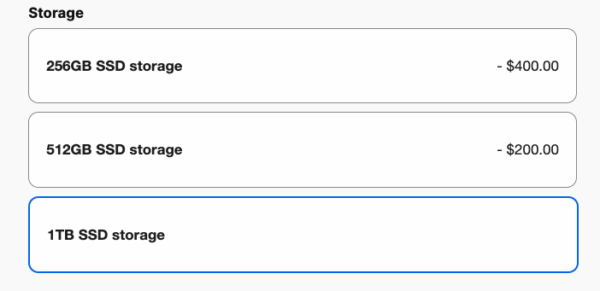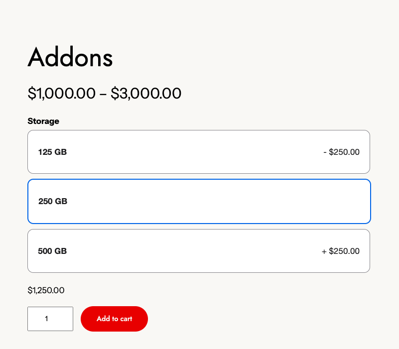 - Functions to display the price difference plus + and minus – based on each selection dynamically like you see on Apples single product page.
