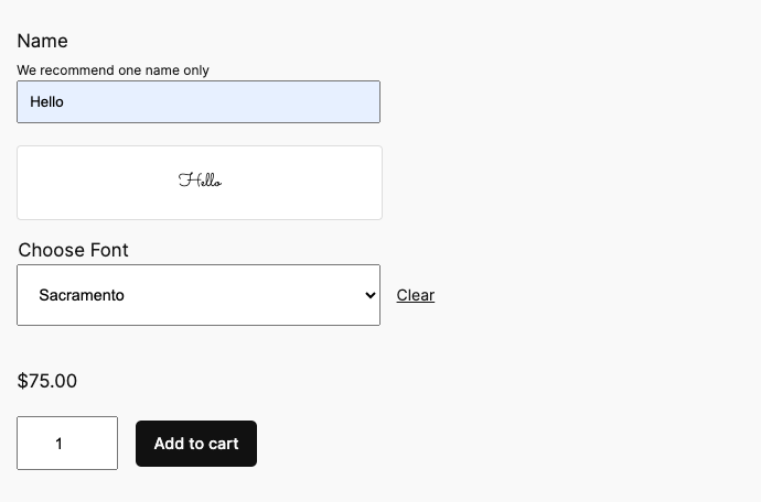 This mini plugin for WooCommerce adds a text field to the single product page for customers to enter text which they can style dynamically on the frontend using variations.
