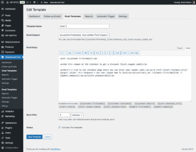 - Create Coupon Code: Enable automatic coupon code generation for abandoned carts