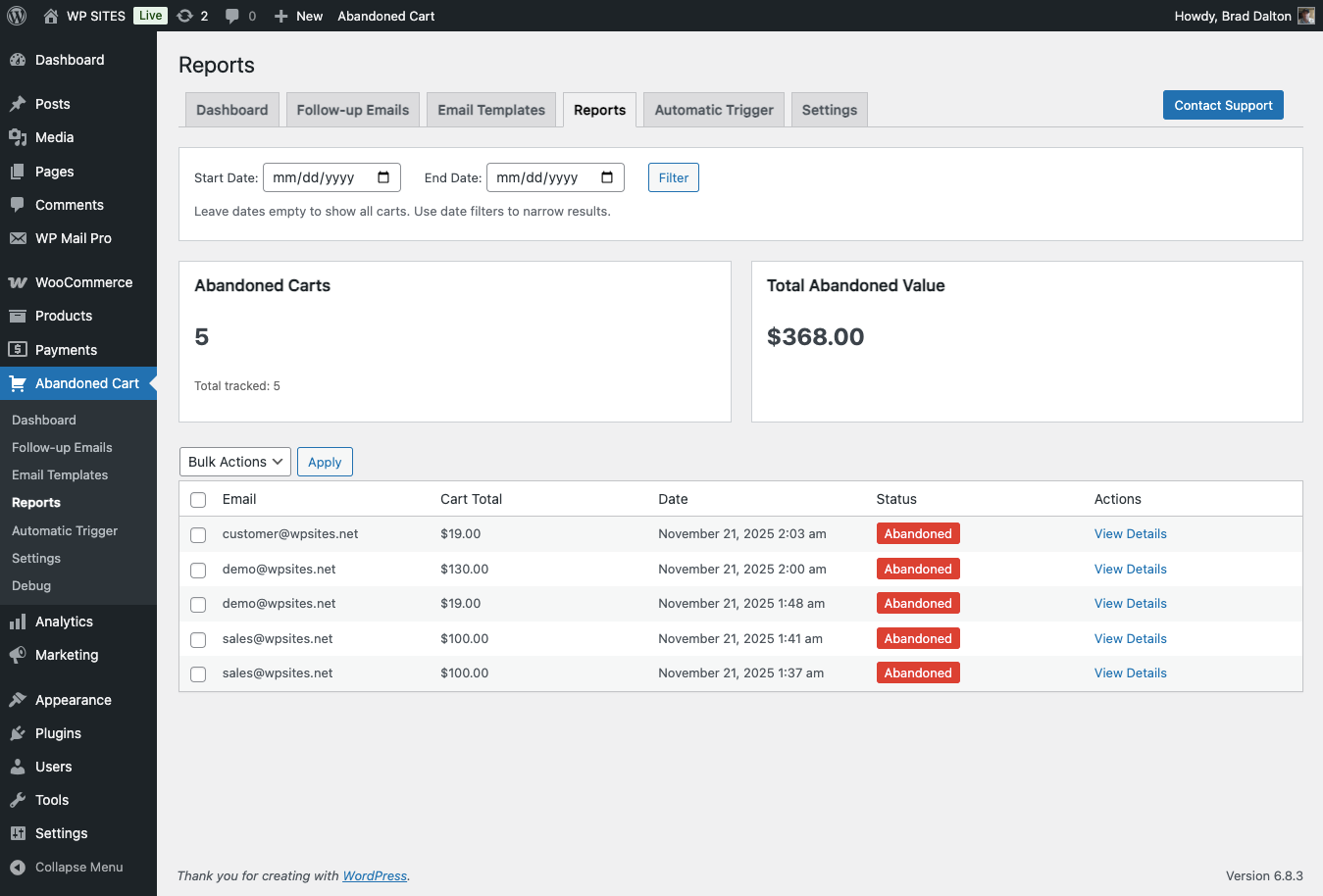 - Reports: Detailed analytics and reports on cart abandonment and recovery
